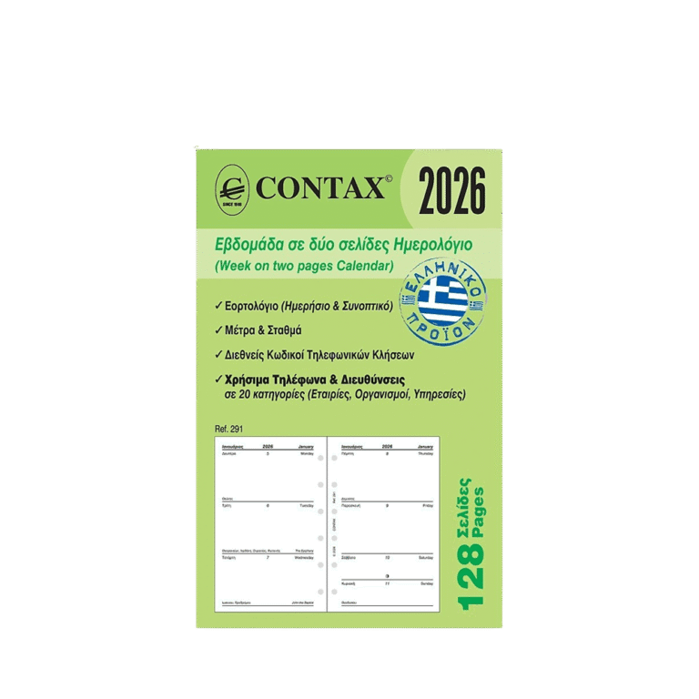 CONTAX ΑΝΤΑΛΛΑΚΤΙΚΑ ORGANIZER 8×12.5cm ΗΜΕΡΟΛΟΓΙΟ ΕΒΔΟΜΑΔΙΑΙΟ ΔΙΣΕΛΙΔΟ 128 ΦΥΛΛΑ POCKET