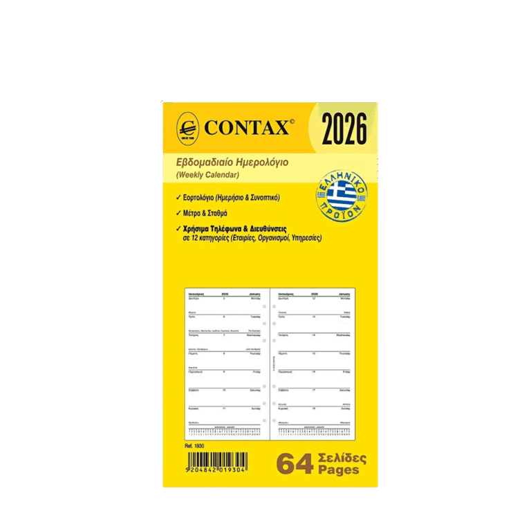 CONTAX ΑΝΤΑΛΛΑΚΤΙΚΑ ORGANIZER 8×12.5cm ΗΜΕΡΟΛΟΓΙΟ ΕΒΔΟΜΑΔΙΑΙΟ 64 ΦΥΛΛΑ POCKET