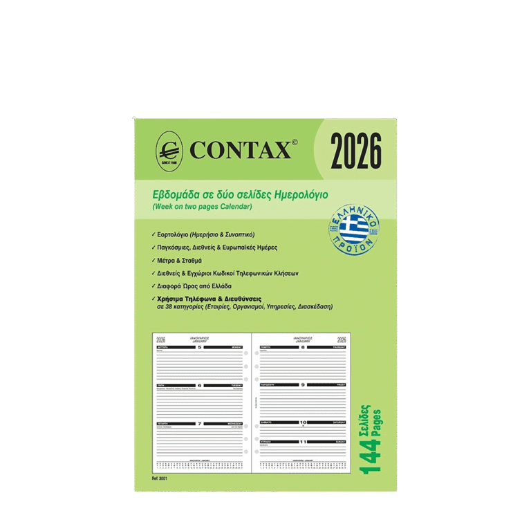 CONTAX ΑΝΤΑΛΛΑΚΤΙΚΑ ORGANIZER 14.8x21cm ΗΜΕΡΟΛΟΓΙΟ ΕΒΔΟΜΑΔΙΑΙΟ ΔΙΣΕΛΙΔΟ Α5 144 ΣΕΛΙΔΕΣ
