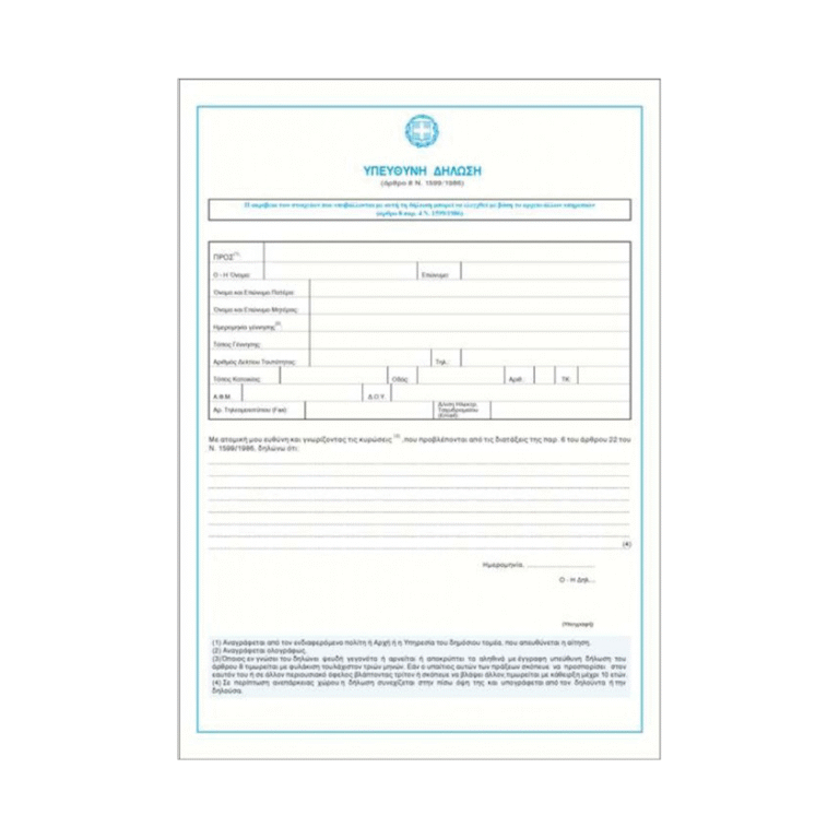TYPOTRUST ΥΠΕΥΘΥΝΗ ΔΗΛΩΣΗ Ν.1599/1986 100 ΦΥΛΛΑ 21x30cm