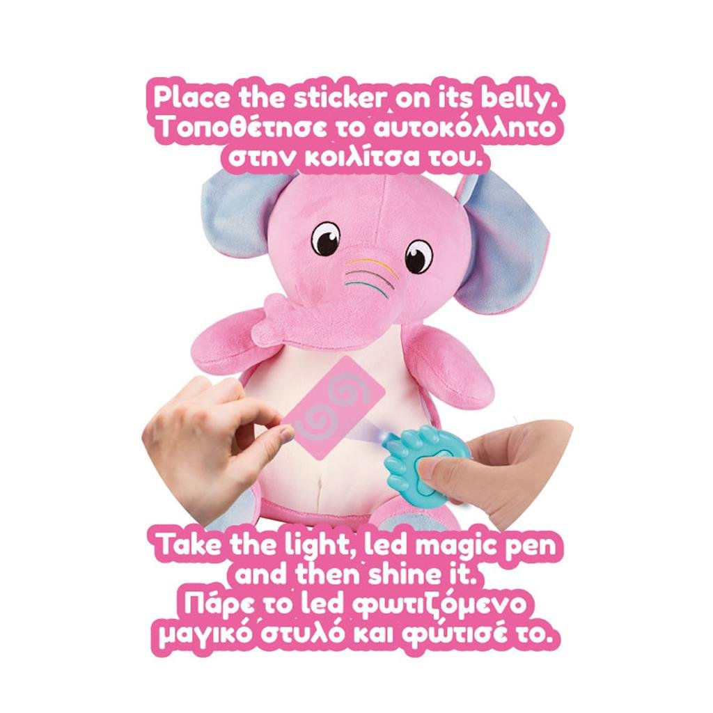 Το Λούτρινο Μαγικό Ελεφαντάκι Cuddly Cuties Luna Toys είναι το πιο γλυκό διαδραστικό παιχνίδι που προσφέρει μοναδική εμπειρία δημιουργίας και φαντασίας! Με διαστάσεις 17x18x 26,5 εκ., είναι απαλό και ιδανικό για παιχνίδι στο σπίτι ή όπου κι αν βρίσκεσαι. Το παιχνίδι διαθέτει ειδική επιφάνεια στην κοιλίτσα του για μαγικές ζωγραφιές. Τοποθέτησε το αυτοκόλλητο στην κοιλίτσα του, πάρε το LED φωτιζόμενο μαγικό στυλό και φώτισε το σχέδιο. Ζωγράφισε το σχέδιο και μετά απλώς αφαίρεσε το αυτοκόλλητο για να δεις το σχέδιο να εξαφανίζεται σιγά σιγά με μαγικό τρόπο!
