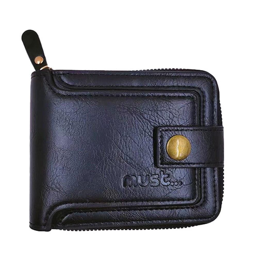Πορτοφόλι Must ανδρικό με φερμουάρ σε μαύρο και καφέ χρώμα, ιδανικό για καθημερινή χρήση. Πρακτικό και κομψό με πολλές θήκες για την εύκολη αποθήκευση των πολύτιμων αντικειμένων. Αναπόσπαστο αξεσουάρ του ανδρικού στιλ, σχεδιασμένο για να είναι άνετο στην τσέπη, προσφέροντας αίσθηση πολυτέλειας.