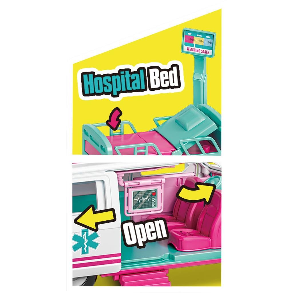 Το Ασθενοφόρο με Κούκλα Luna Toys συνδυάζει δημιουργικότητα, φαντασία και εκπαιδευτικό παιχνίδι. Το ασθενοφόρο ανοίγει, μετατρέποντας τον εσωτερικό χώρο σε νοσοκομείο για ρεαλιστικό παιχνίδι ρόλων. Το σετ περιλαμβάνει επίσης αξεσουάρ όπως κρεβάτι και ιατρικά εργαλεία, επιτρέποντας στα παιδιά να αναπαραστήσουν ιατρικές καταστάσεις και να δημιουργήσουν ιστορίες φροντίδας και περιπέτειας.